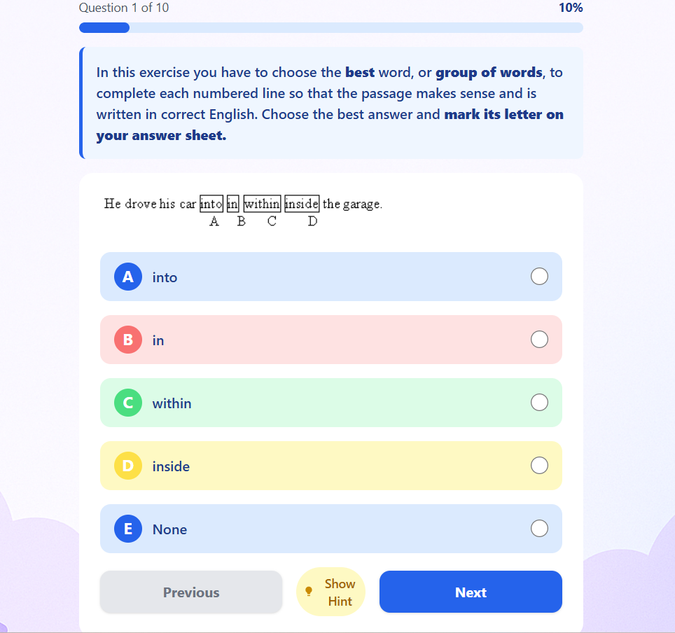 Carefully designed practice tests that mirror SEAG transfer exams. Questions are organised by topic and difficulty, helping students build confidence step by step.